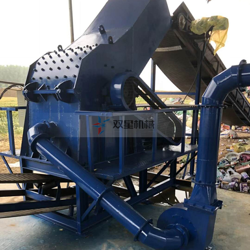 皓星机械金属破碎机生产线由进料输送机、破碎机主机、出料输送机、磁选输送机、分料输送机、除尘、操作柜组成。从金属破碎机出来的破碎物,经过皮带输送机、磁力分选系统,把铁金属物和有色金属物和非金属物分离开,并由各自输送机送出归堆。有色金属和非金属物在输送机上会再次受到磁选设备的搜索,把游离铁金属物拣出,从而提高铁金属物的回收率,同时通过人工挑选有色金属,可提高回收效益。